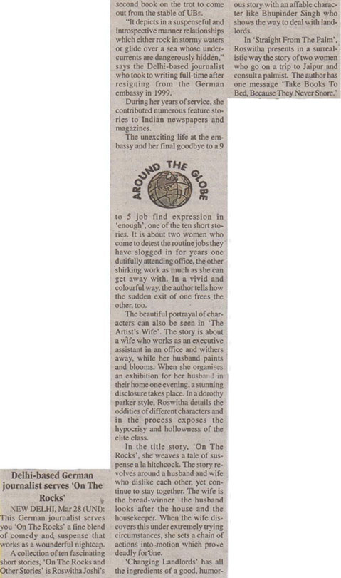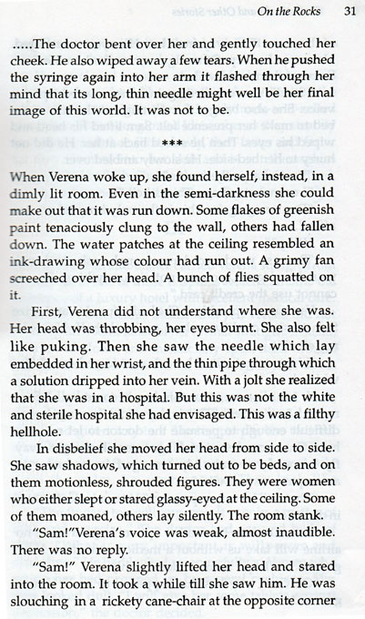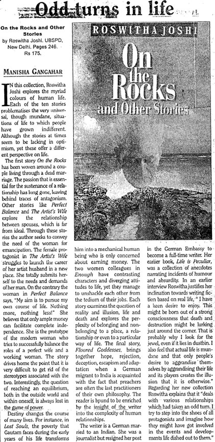 On the Rocks is a collection of ten fascinating stories in which the author depicts in a suspenseful, introspective manner relationships which either rock in stormy waters or glide over a sea whose undercurrents are dangerously hidden.
